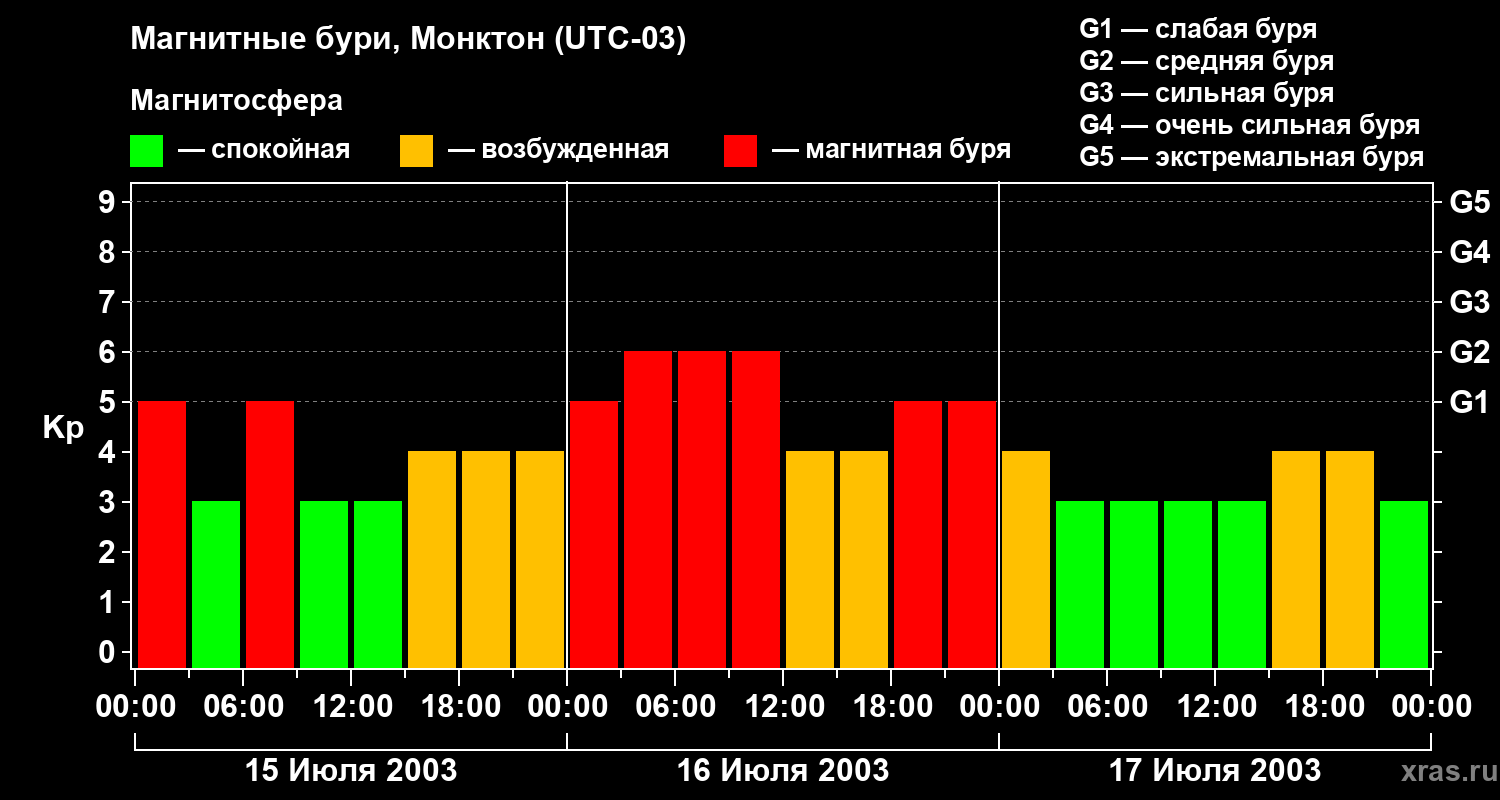 Магнитные бури в Монктоне — 17 июля 2003 года
