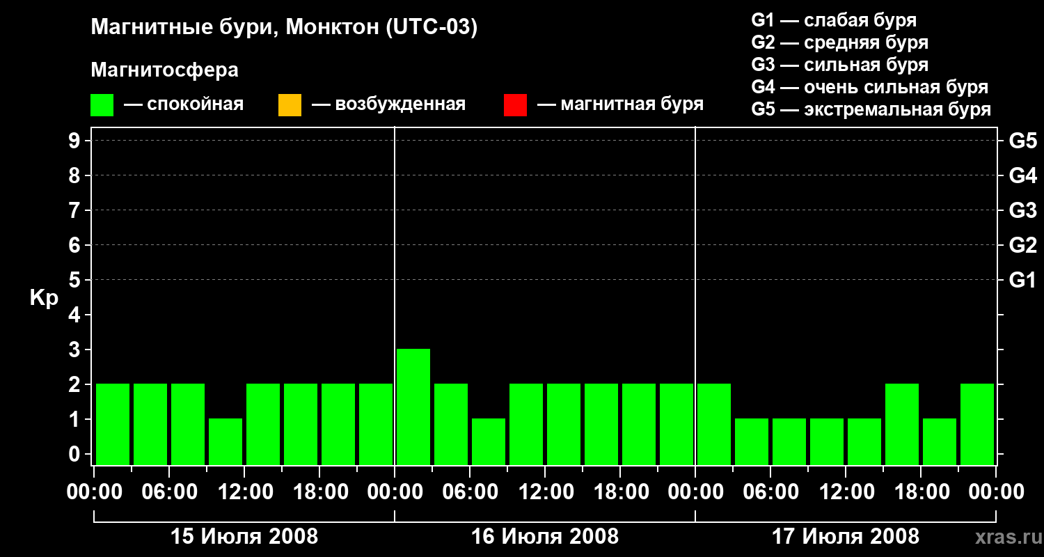 Магнитные бури в Монктоне — 17 июля 2008 года