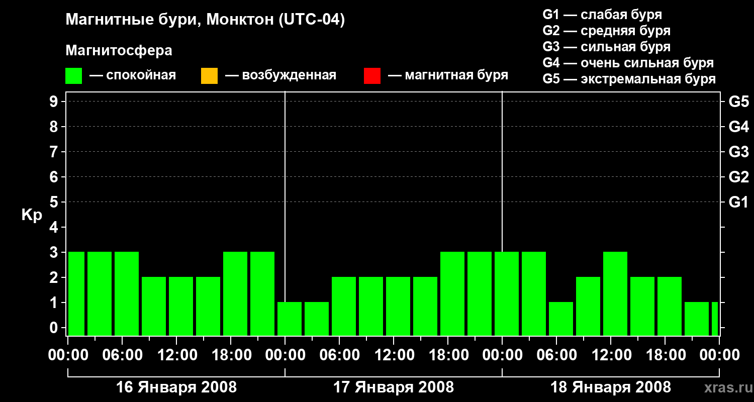 Магнитные бури в Монктоне — 18 января 2008 года