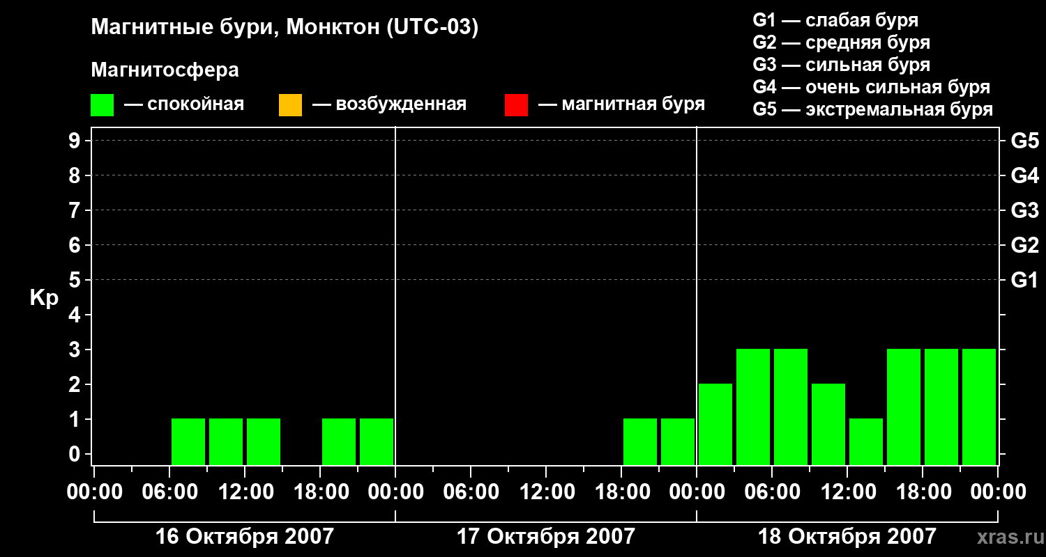 Магнитные бури в Монктоне — 18 октября 2007 года