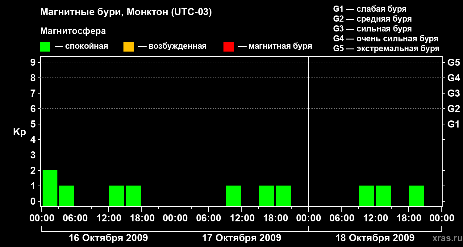 Магнитные бури в Монктоне — 18 октября 2009 года