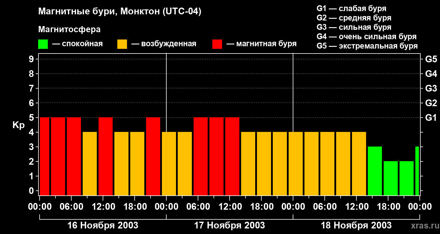 Магнитные бури в Монктоне — 18 ноября 2003 года
