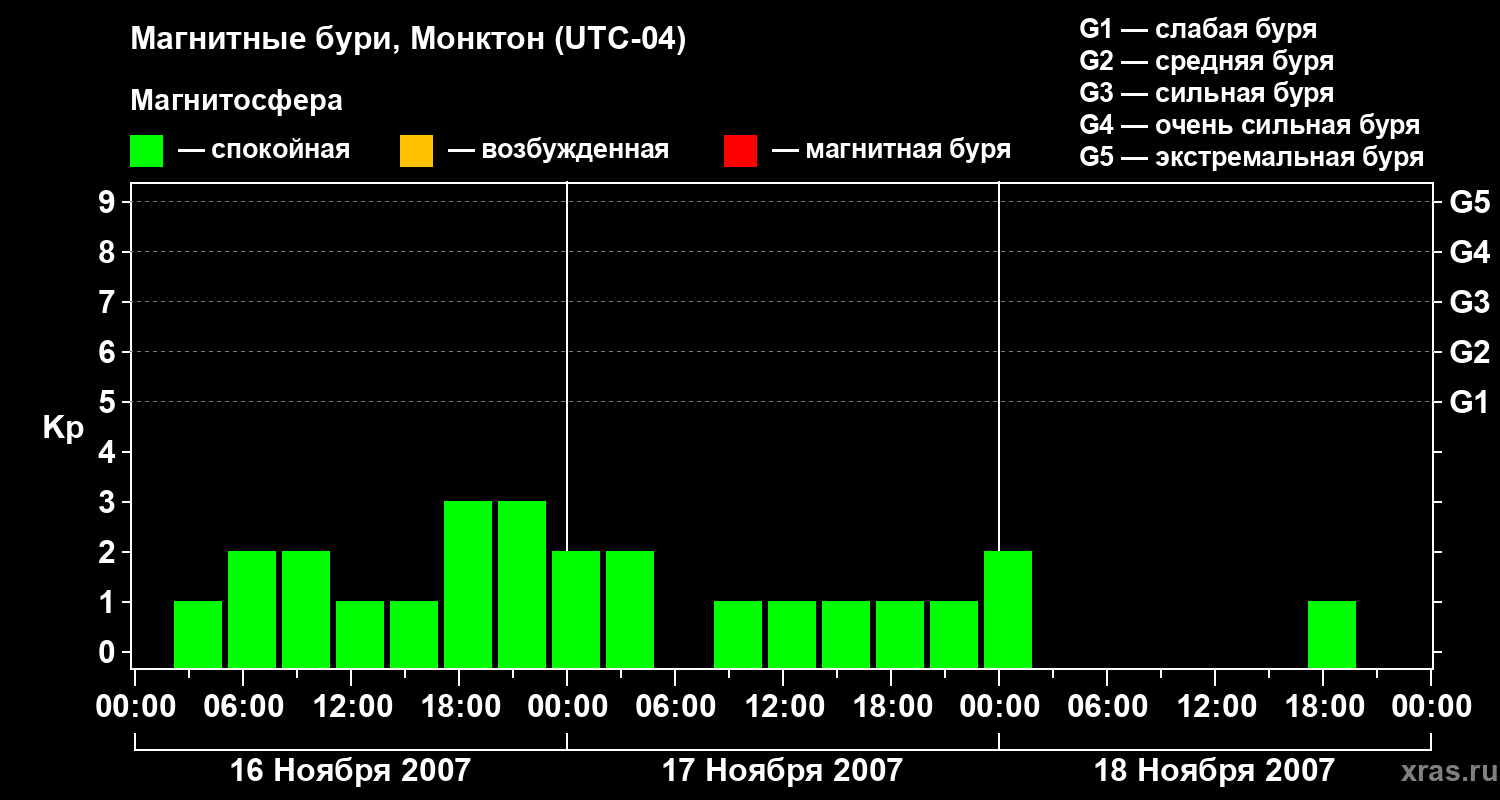 Магнитные бури в Монктоне — 18 ноября 2007 года