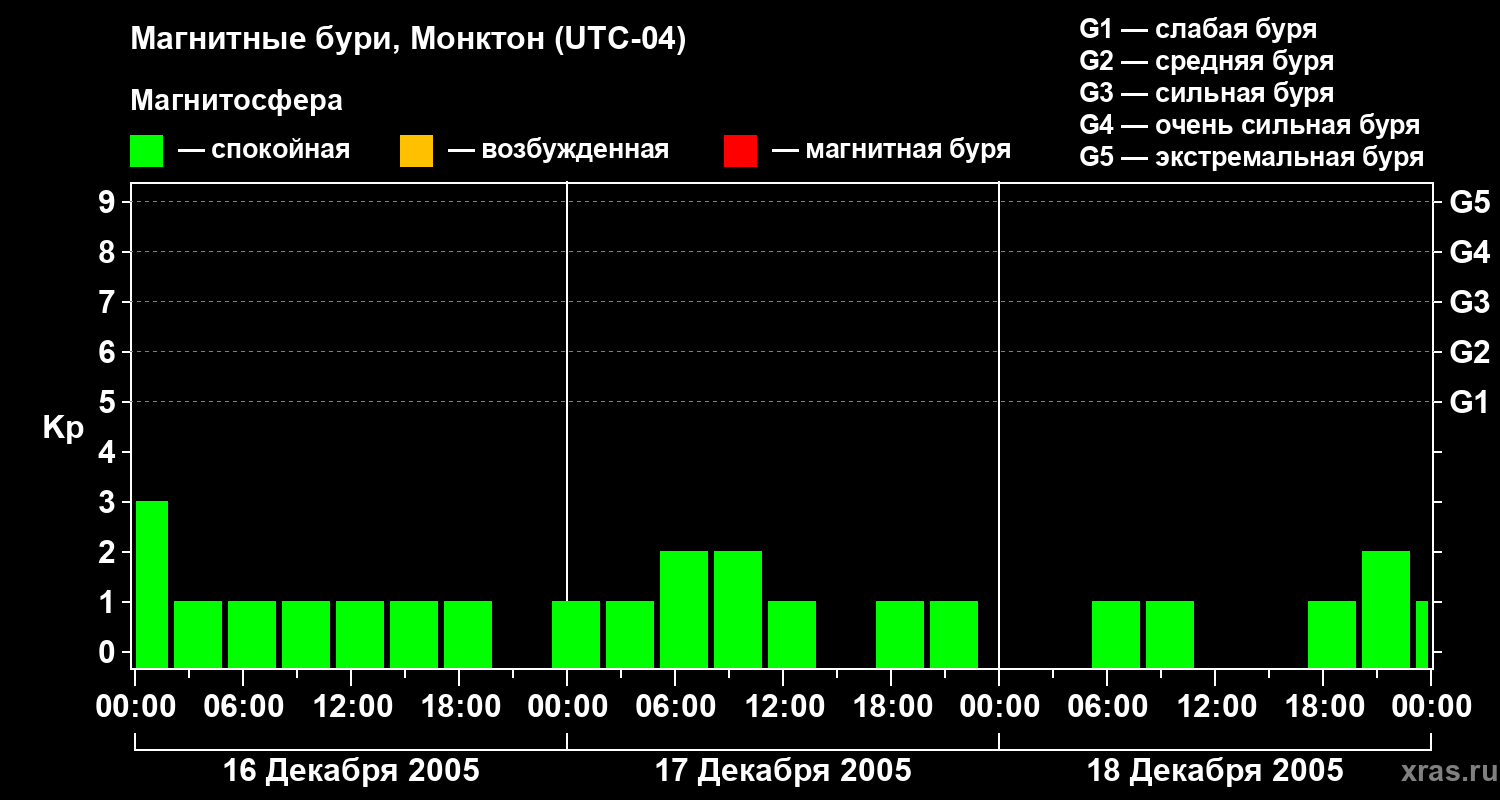 Магнитные бури в Монктоне — 18 декабря 2005 года