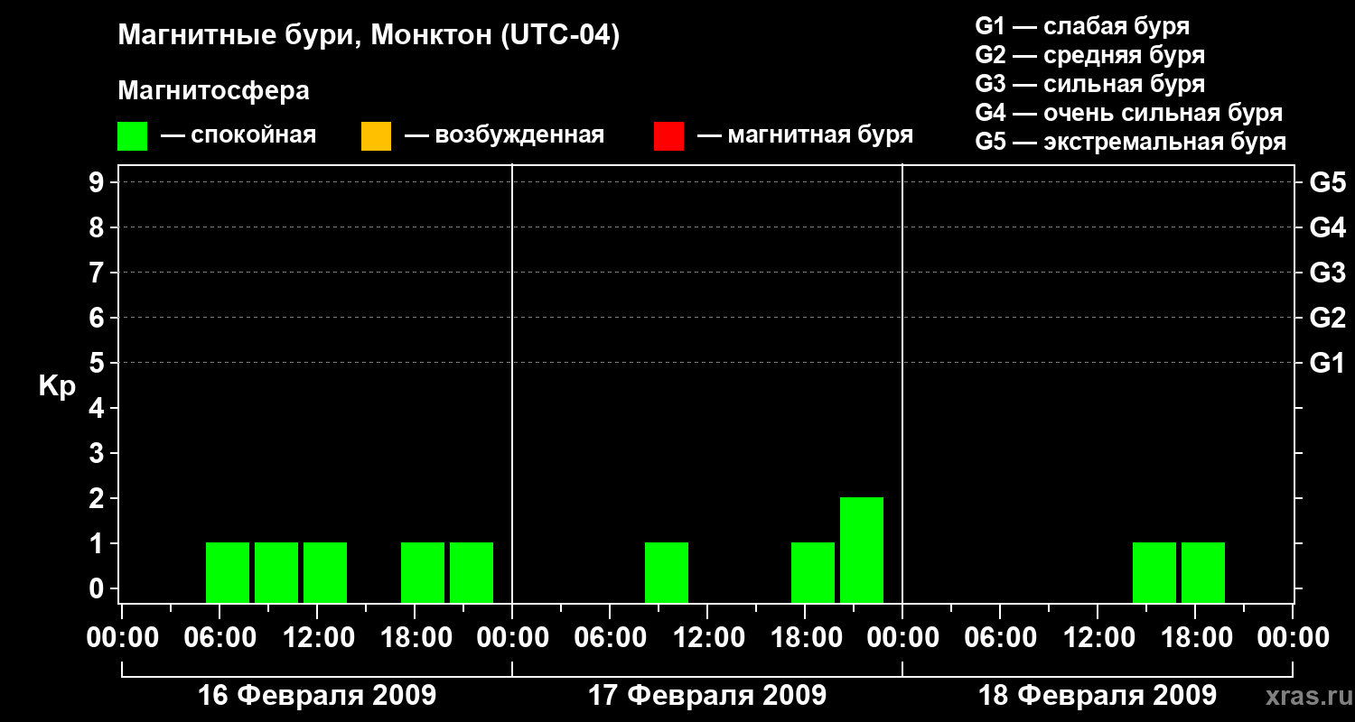 Магнитные бури в Монктоне — 18 февраля 2009 года