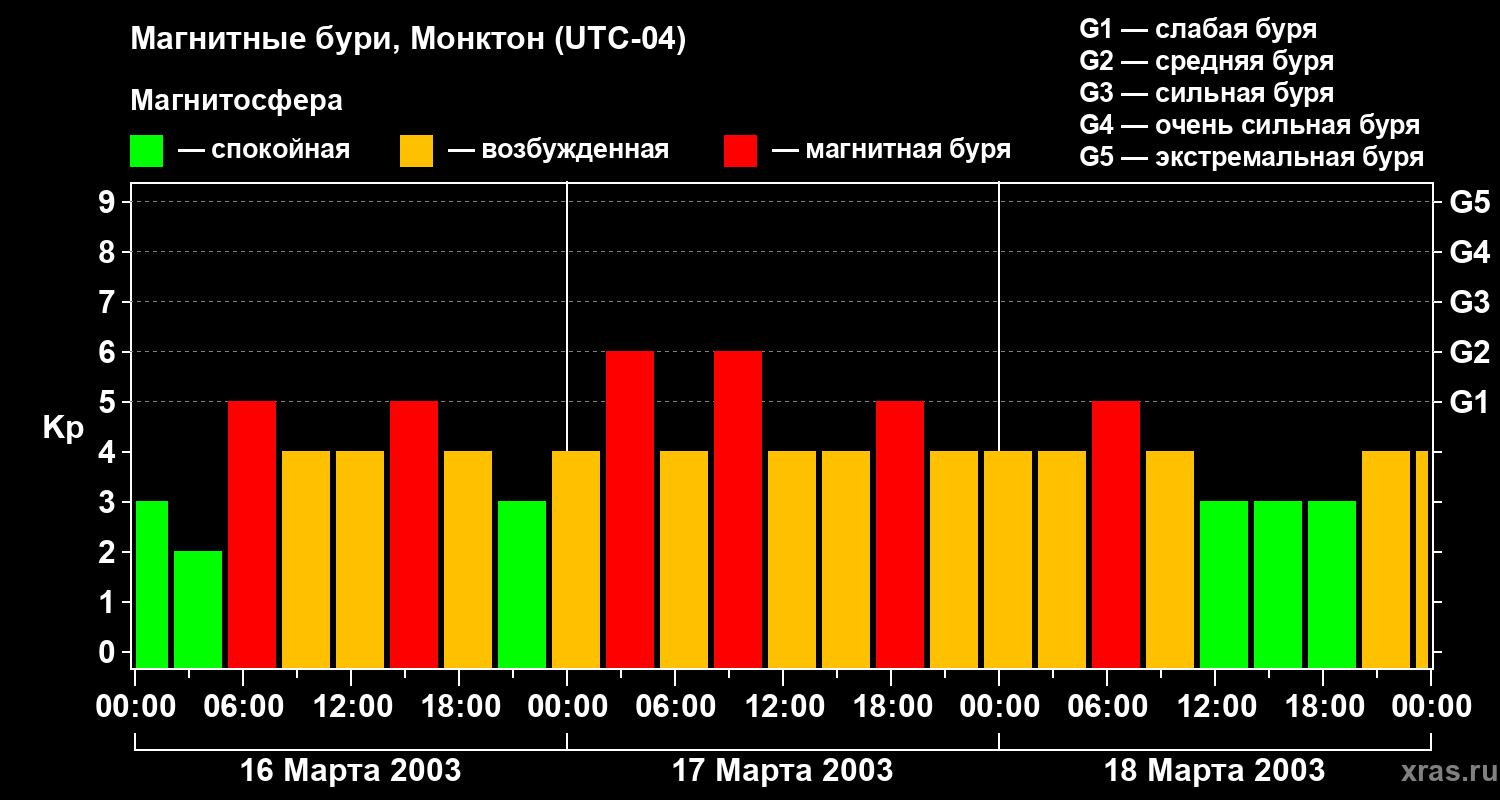 Магнитные бури в Монктоне — 18 марта 2003 года