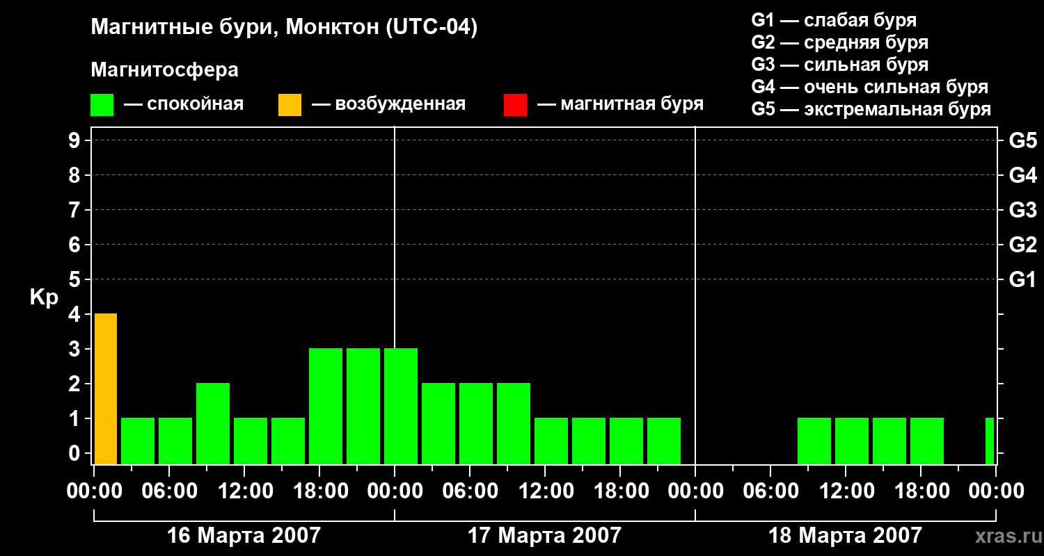Магнитные бури в Монктоне — 18 марта 2007 года