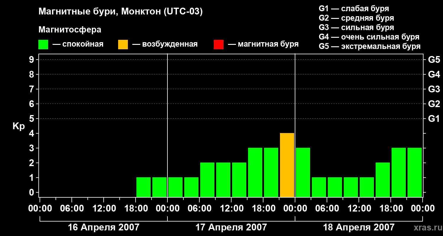 Магнитные бури в Монктоне — 18 апреля 2007 года