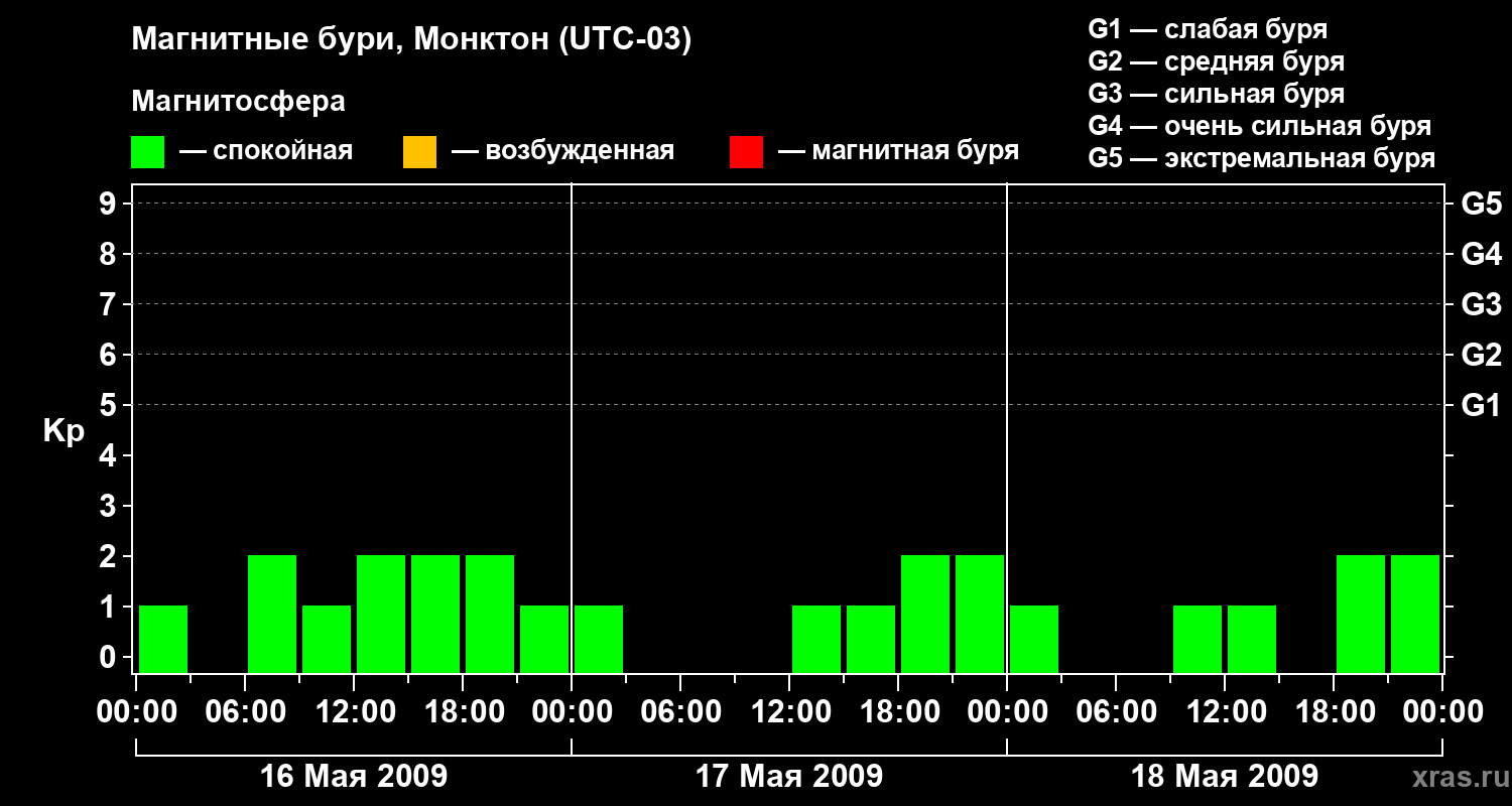 Магнитные бури в Монктоне — 18 мая 2009 года