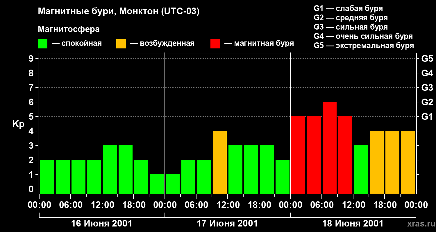 Магнитные бури в Монктоне — 18 июня 2001 года