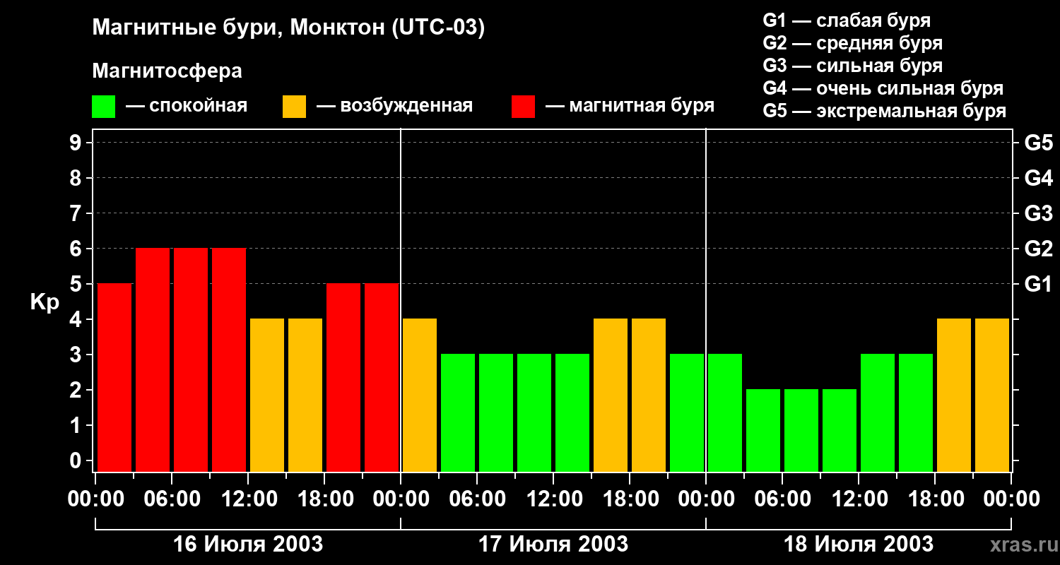 Магнитные бури в Монктоне — 18 июля 2003 года