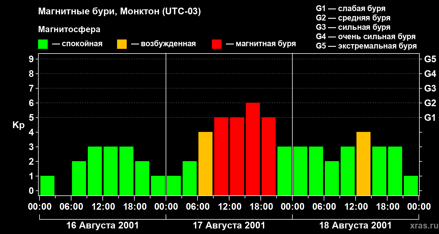 Магнитные бури в Монктоне — 18 августа 2001 года