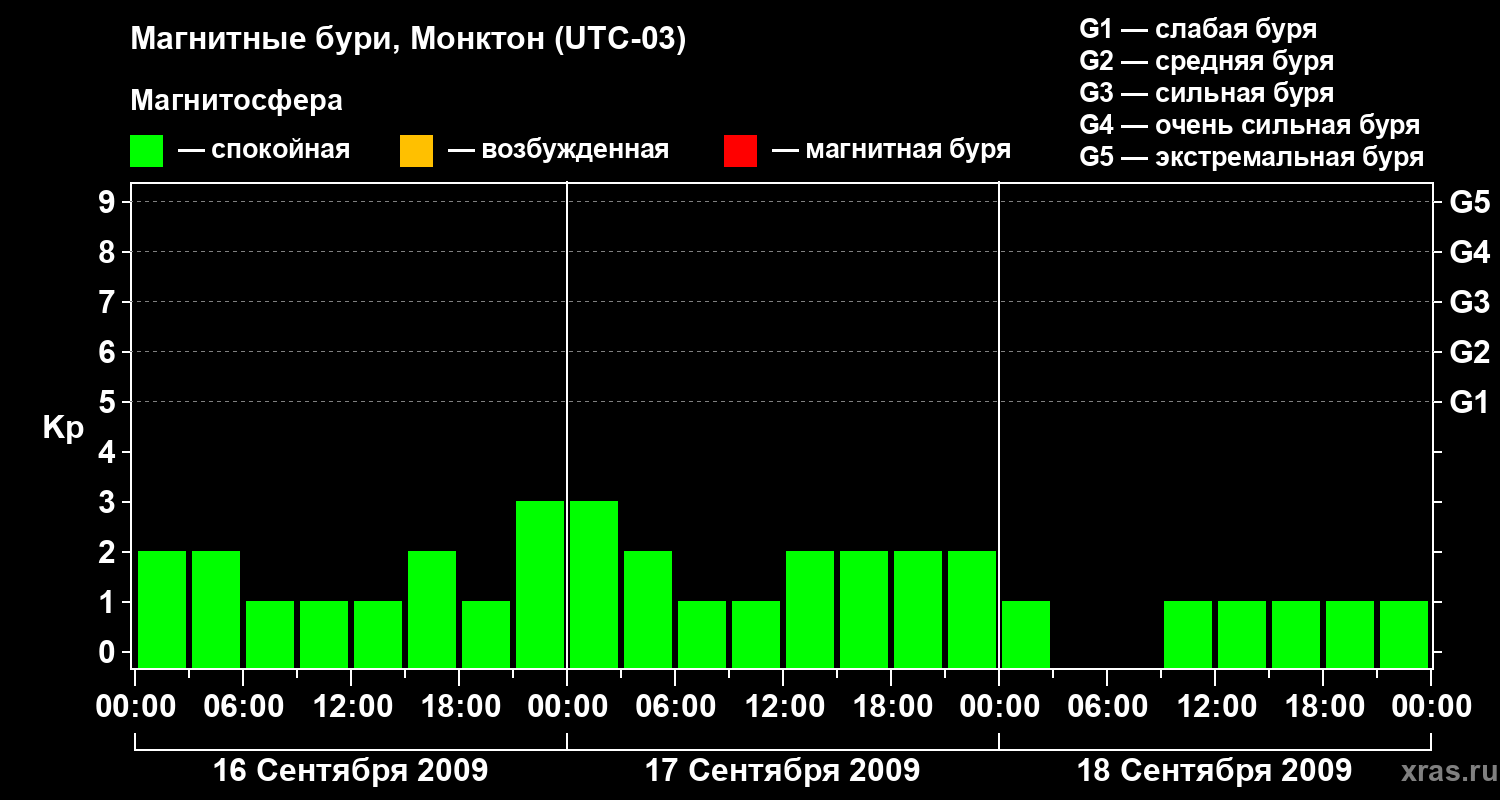 Магнитные бури в Монктоне — 18 сентября 2009 года