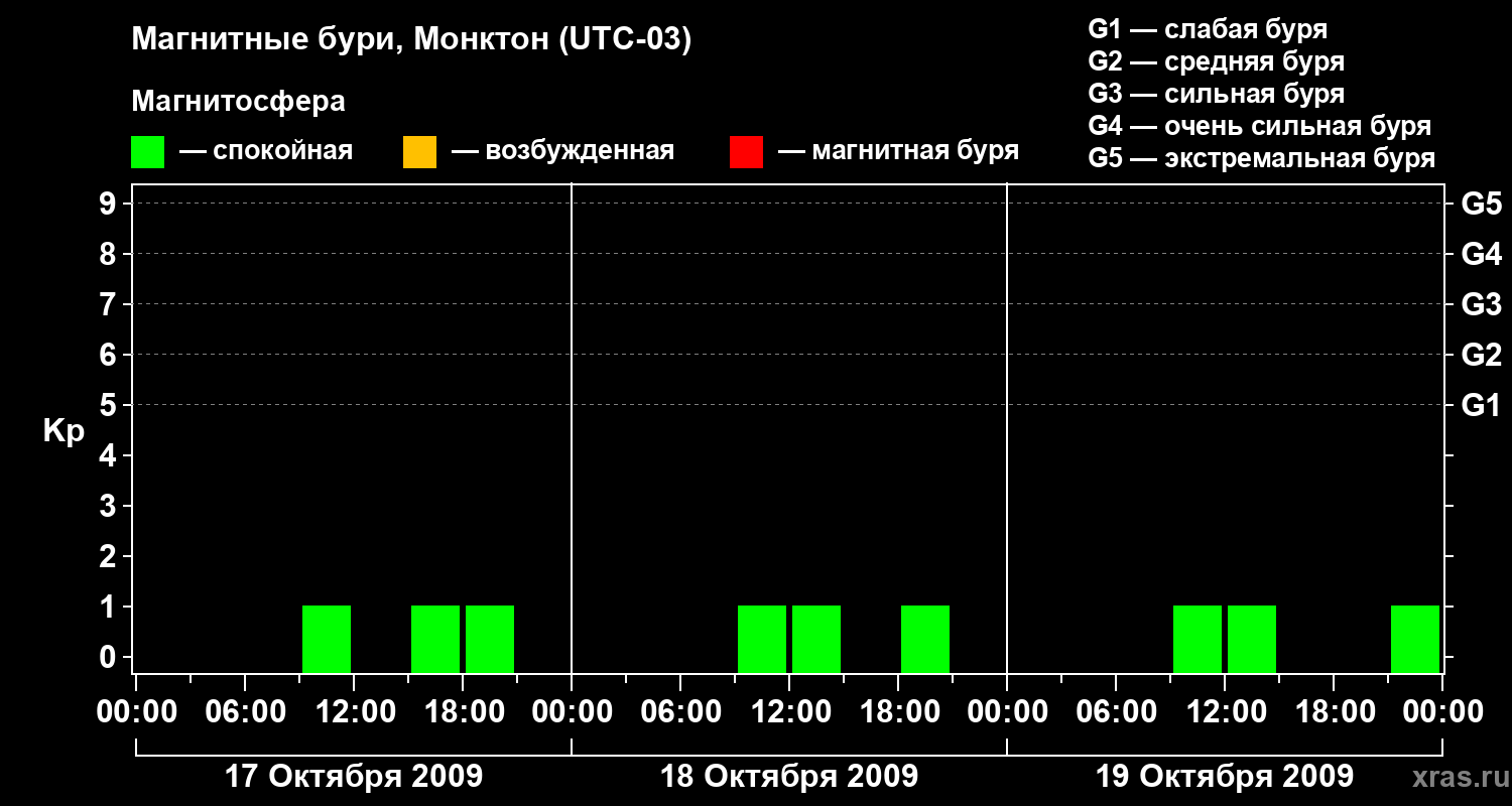 Магнитные бури в Монктоне — 19 октября 2009 года