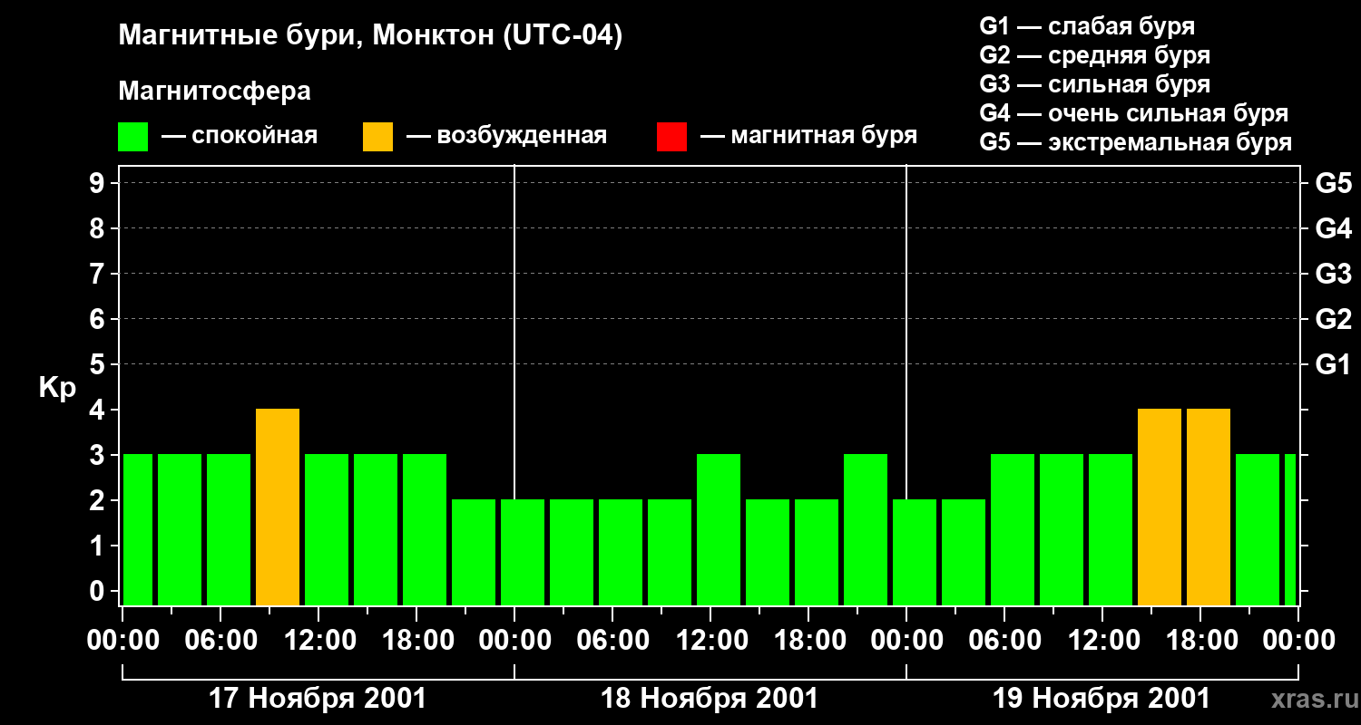 Магнитные бури в Монктоне — 19 ноября 2001 года