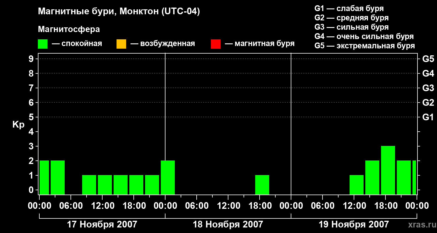 Магнитные бури в Монктоне — 19 ноября 2007 года