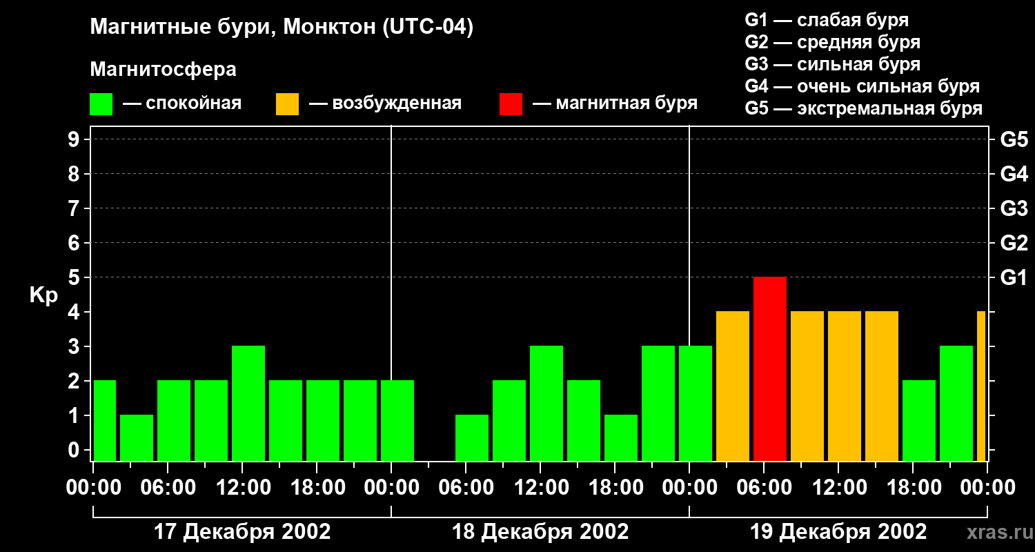 Магнитные бури в Монктоне — 19 декабря 2002 года