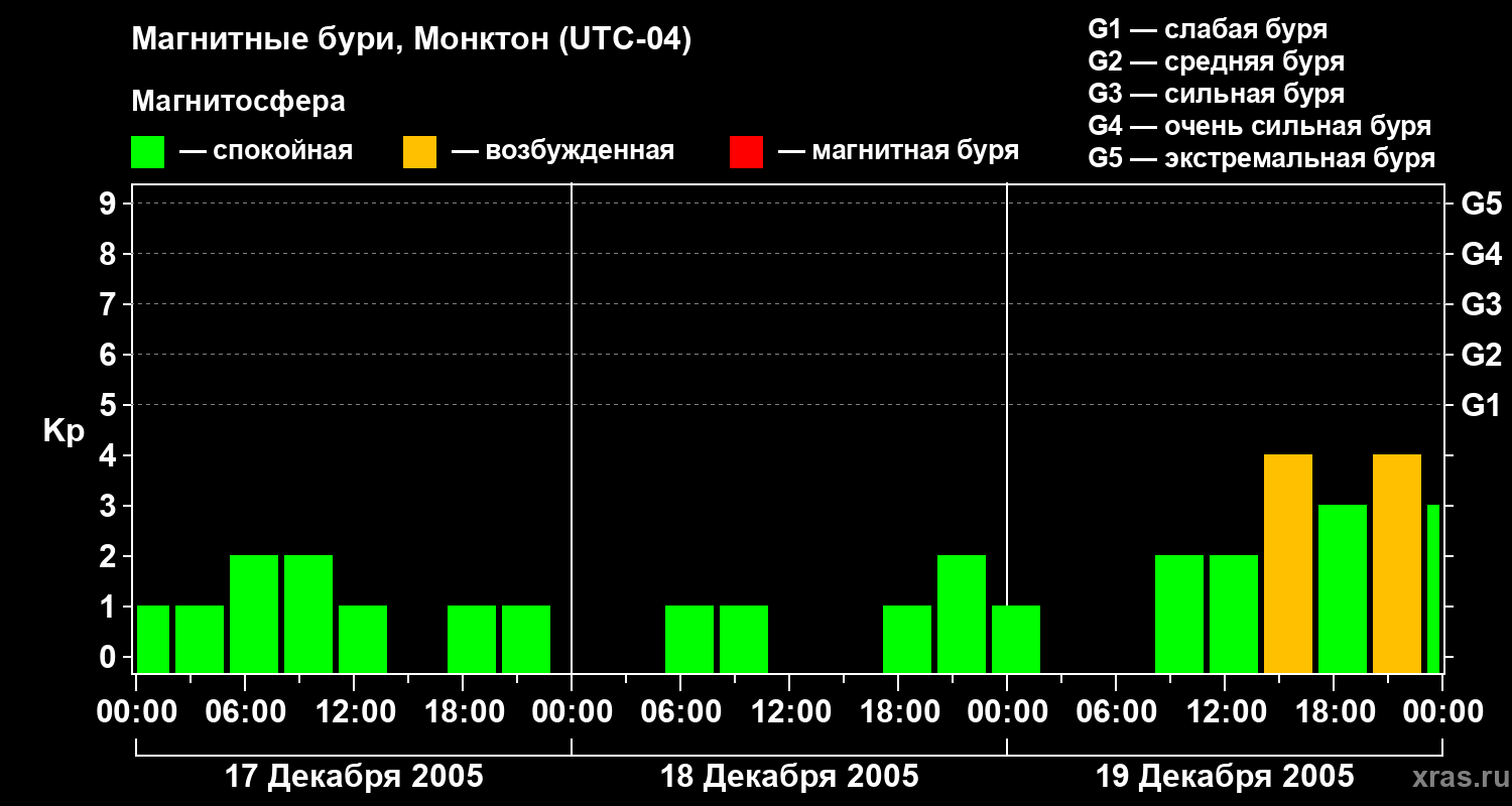 Магнитные бури в Монктоне — 19 декабря 2005 года
