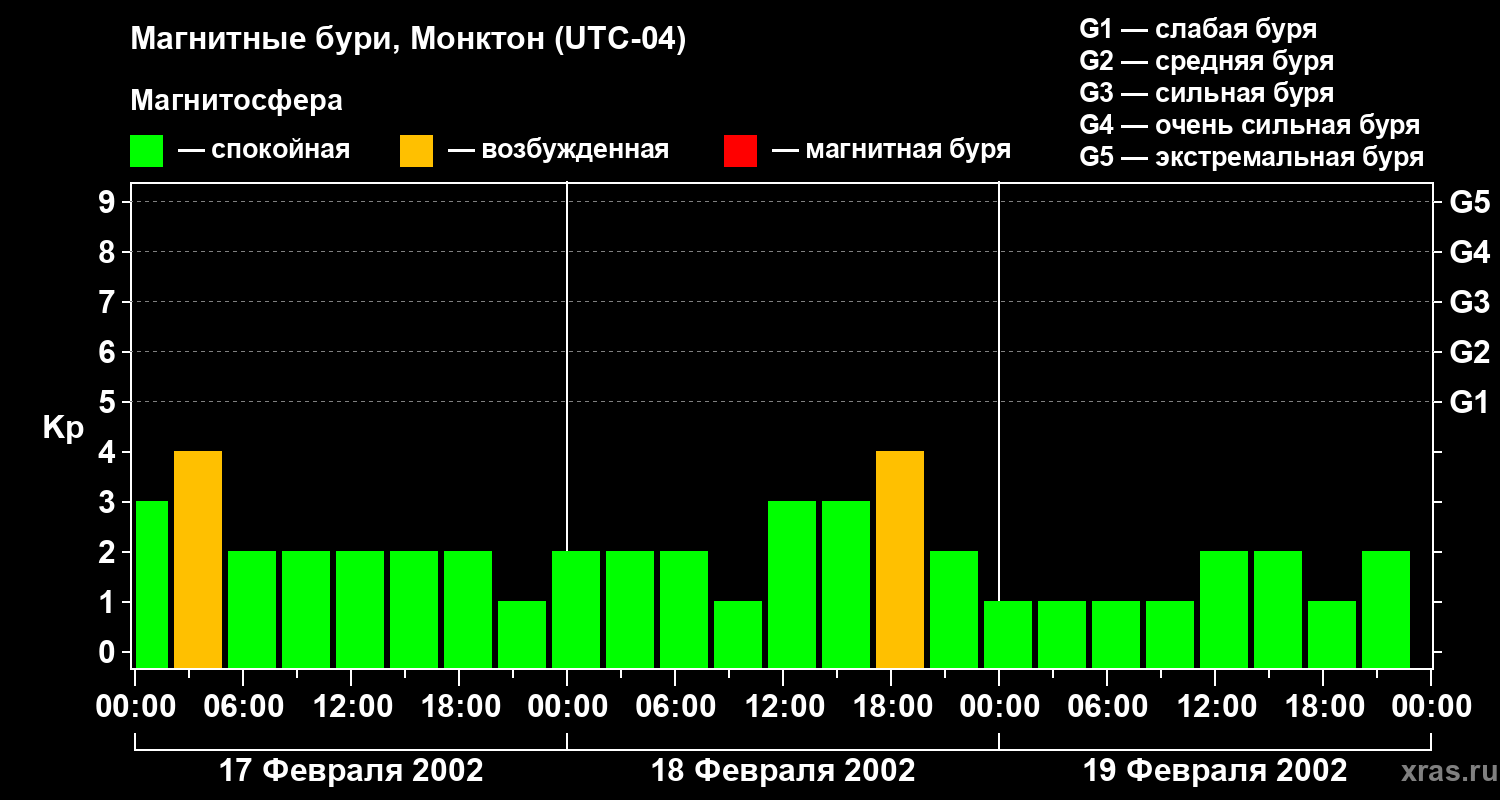 Магнитные бури в Монктоне — 19 февраля 2002 года