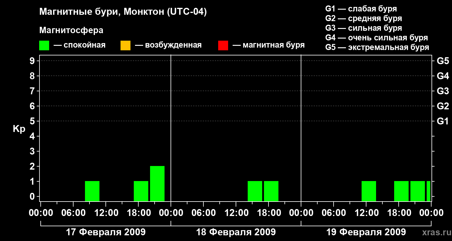 Магнитные бури в Монктоне — 19 февраля 2009 года