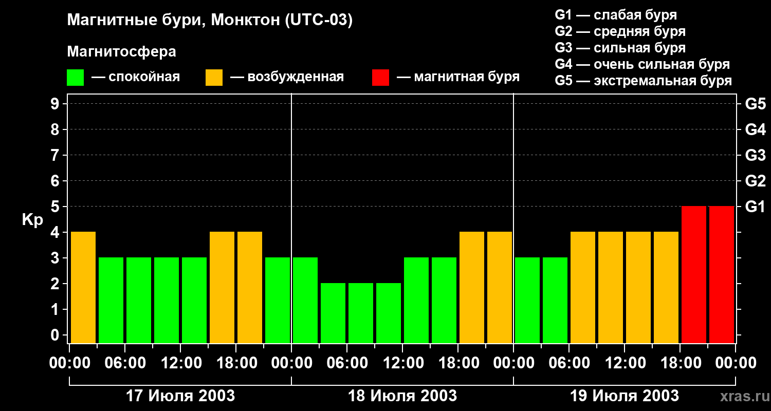 Магнитные бури в Монктоне — 19 июля 2003 года
