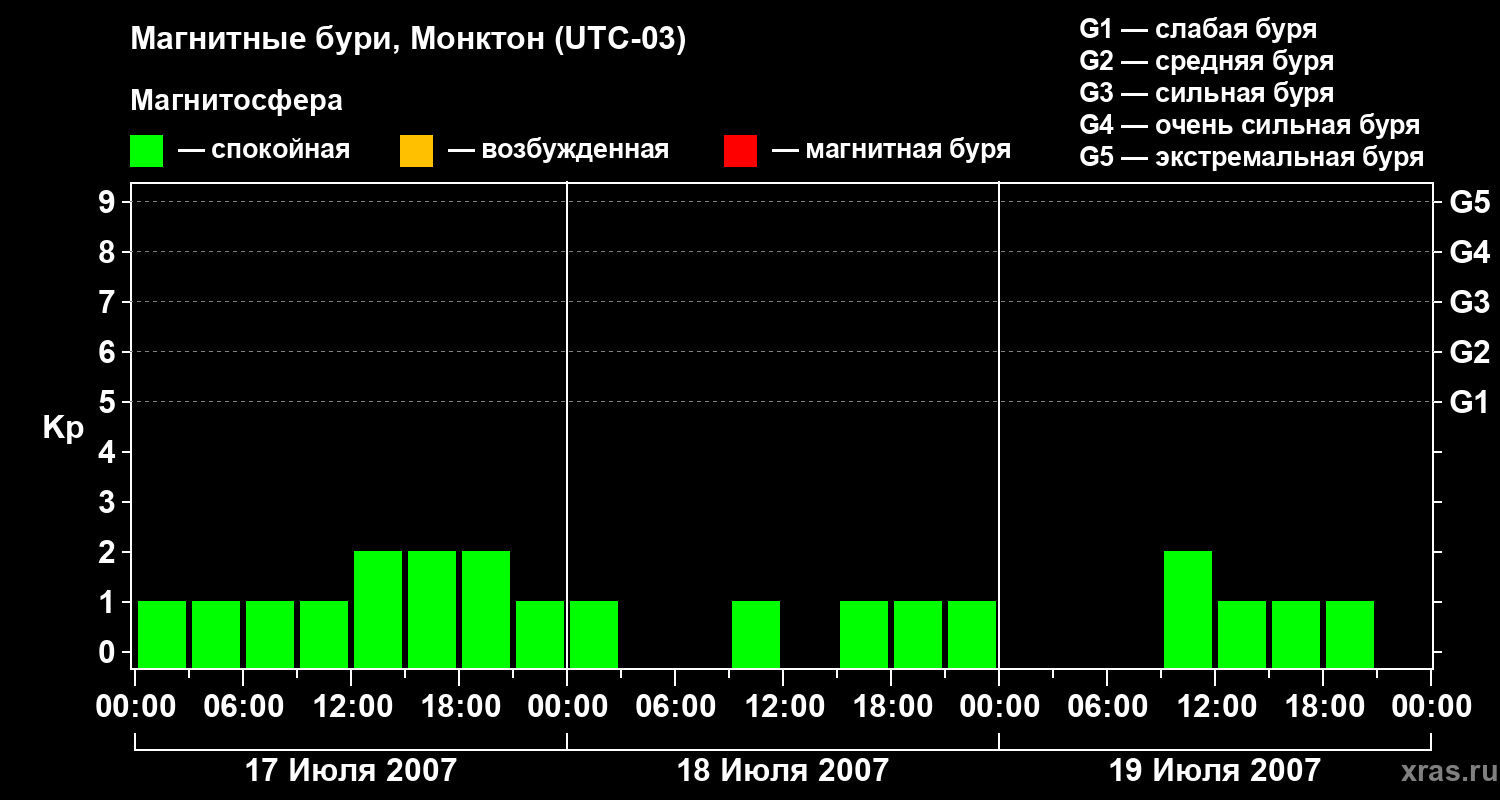 Магнитные бури в Монктоне — 19 июля 2007 года