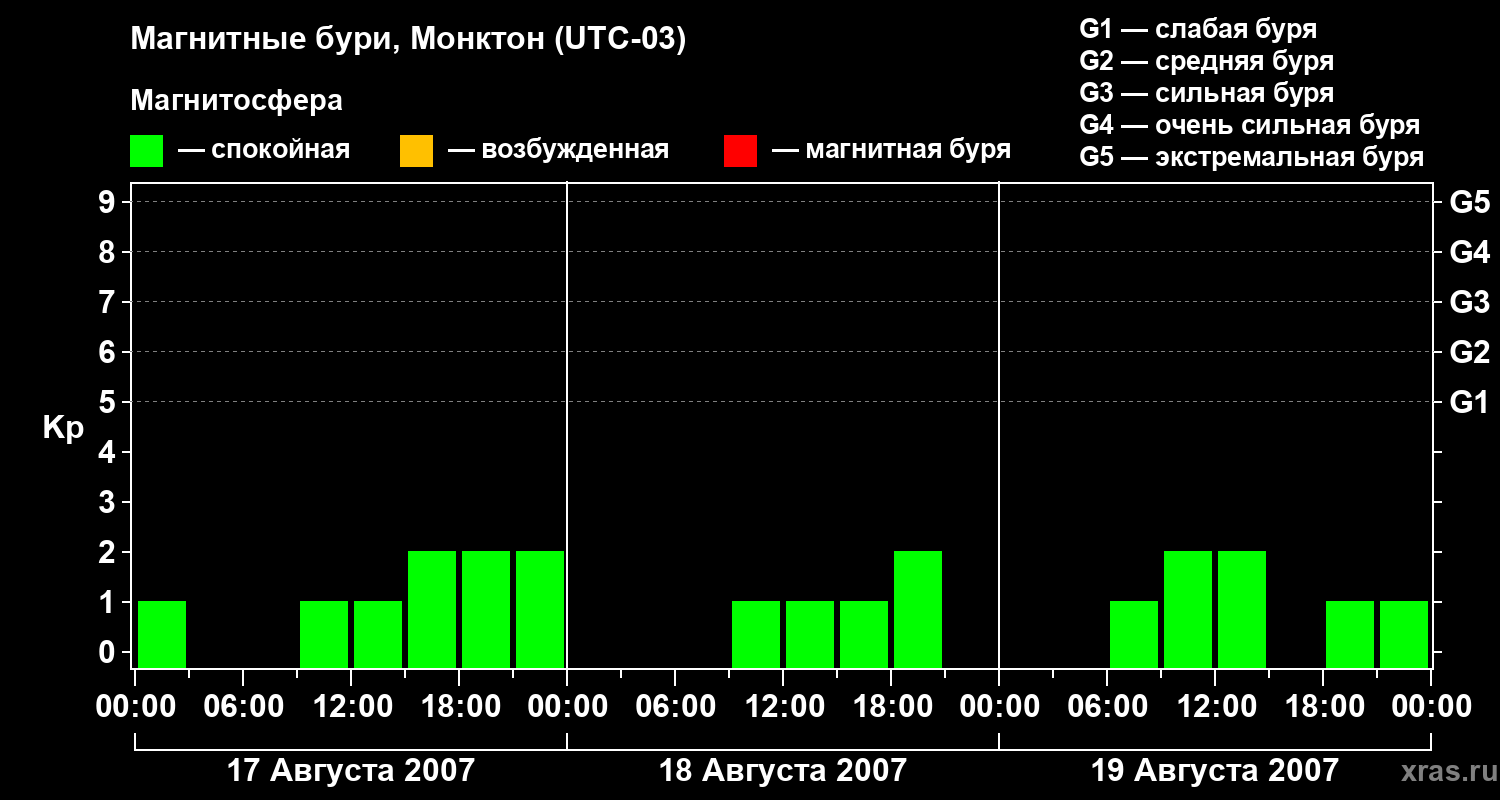 Магнитные бури в Монктоне — 19 августа 2007 года