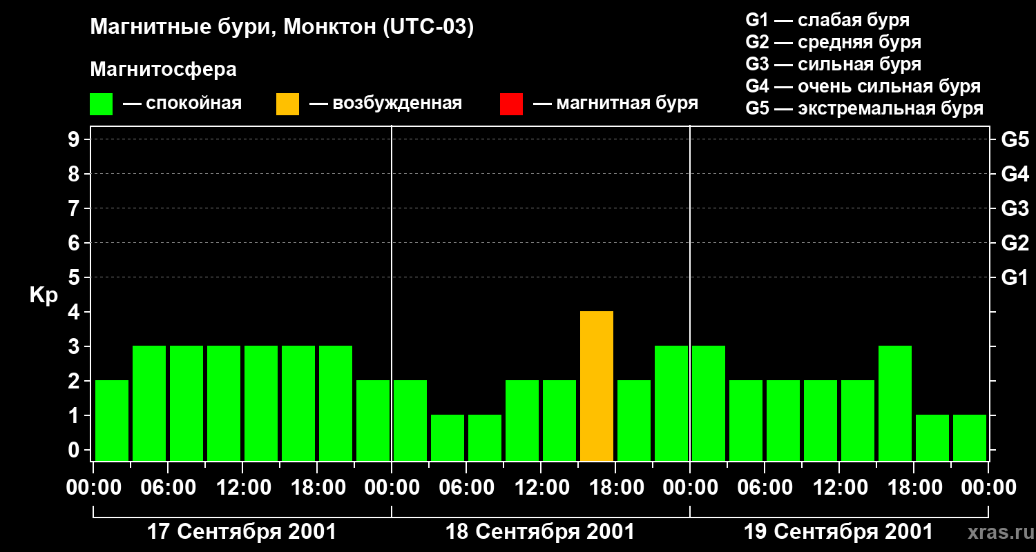 Магнитные бури в Монктоне — 19 сентября 2001 года