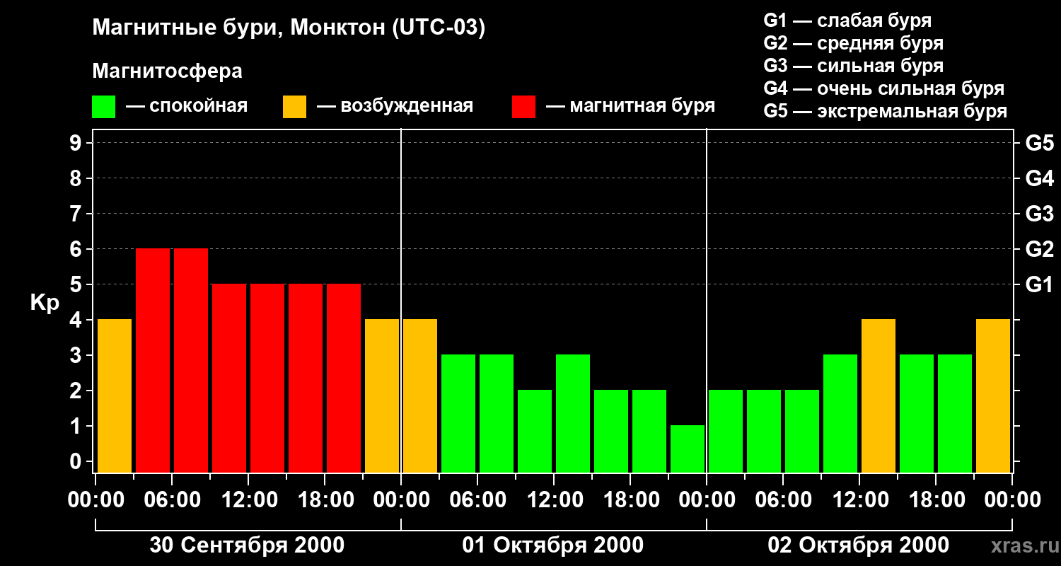 Магнитные бури в Монктоне — 2 октября 2000 года