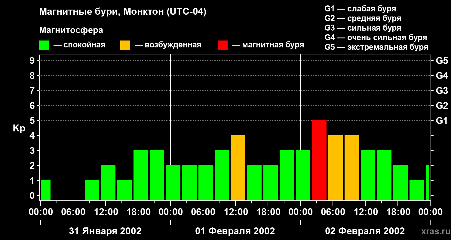 Магнитные бури в Монктоне 2 февраля 2002 года