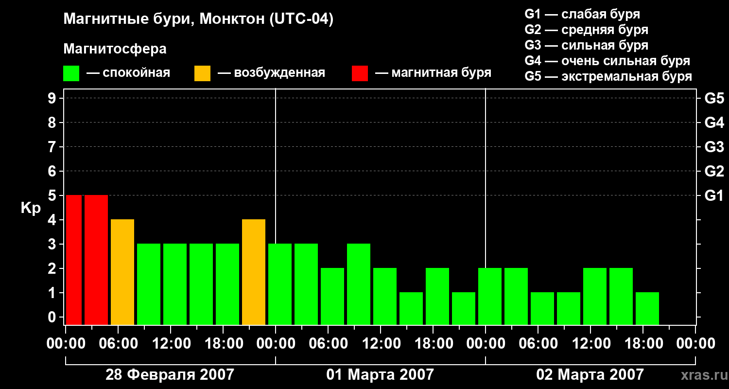 Магнитные бури в Монктоне — 2 марта 2007 года
