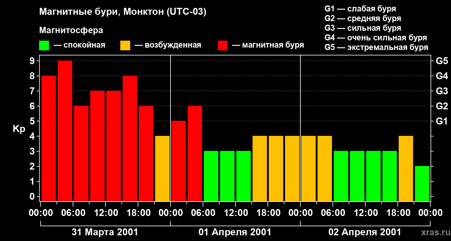 Магнитные бури в Монктоне — 2 апреля 2001 года