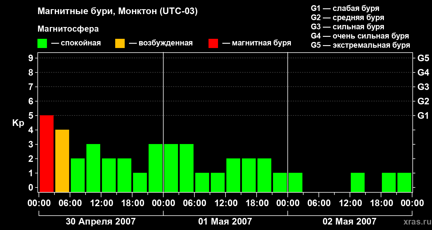 Магнитные бури в Монктоне — 2 мая 2007 года