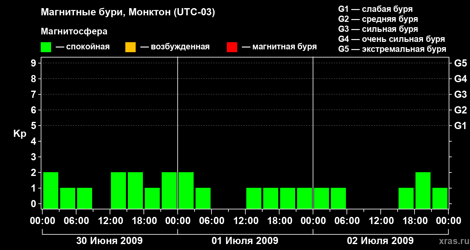 Магнитные бури в Монктоне — 2 июля 2009 года