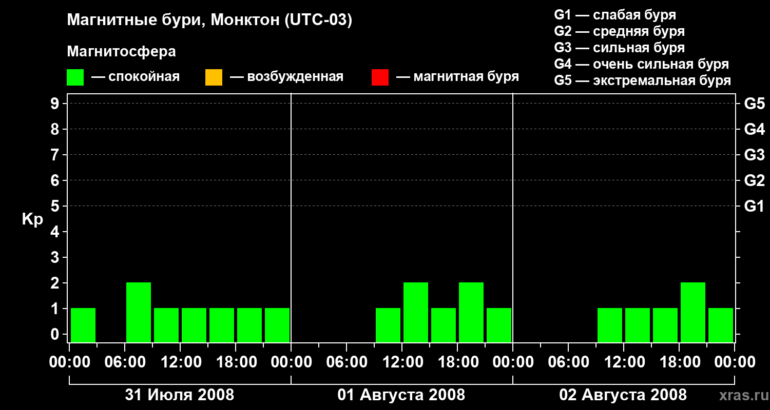 Магнитные бури в Монктоне — 2 августа 2008 года