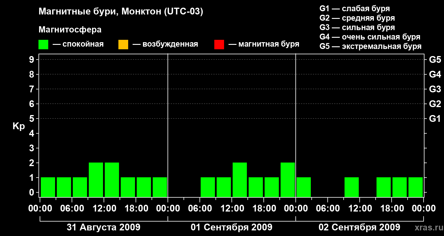 Магнитные бури в Монктоне — 2 сентября 2009 года