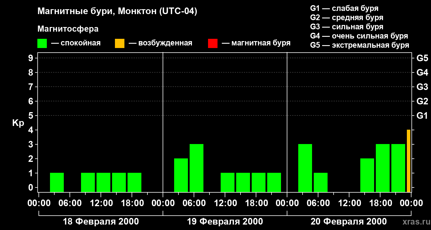 Магнитные бури в Монктоне — 20 февраля 2000 года