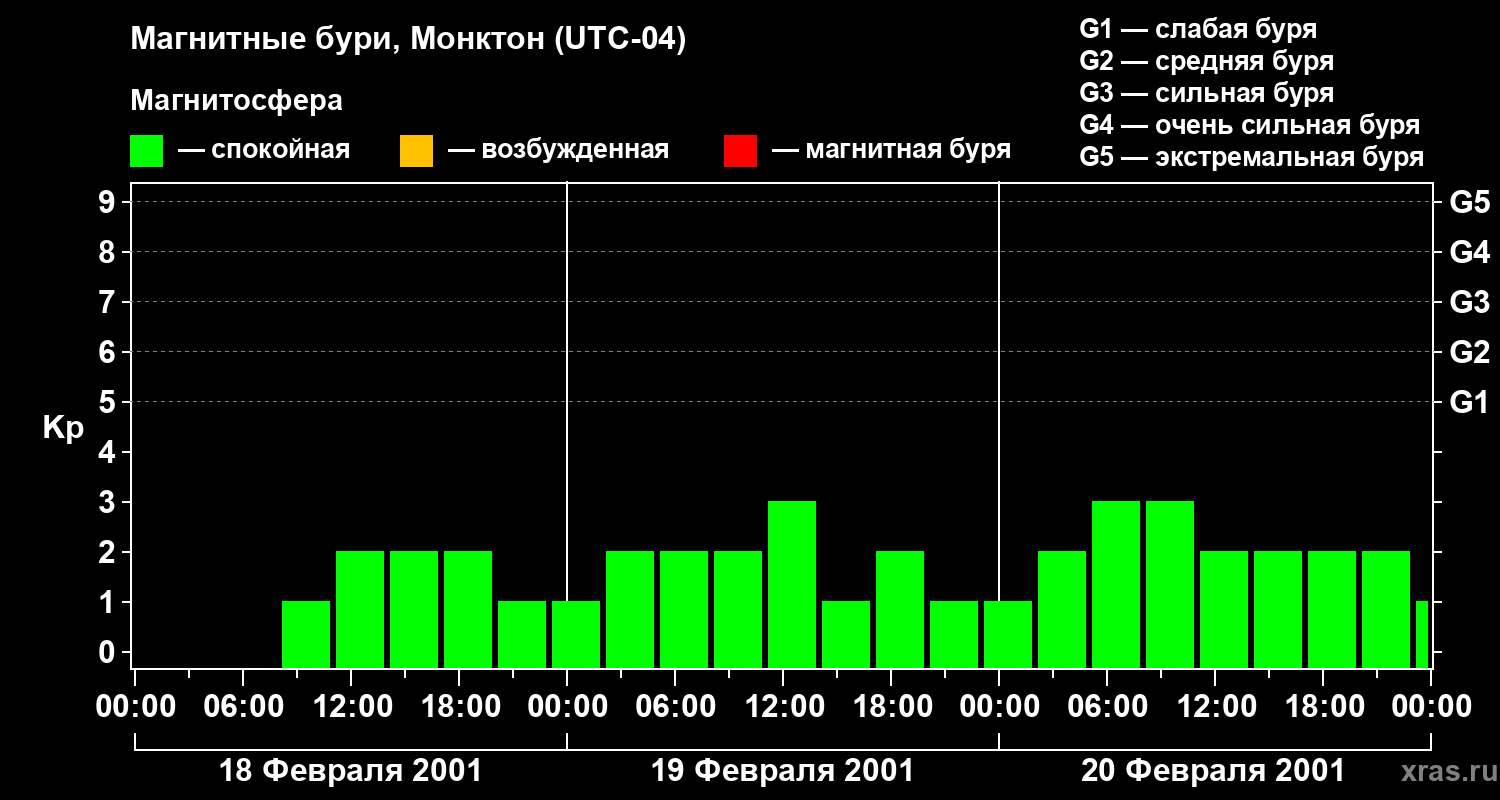 Магнитные бури в Монктоне — 20 февраля 2001 года