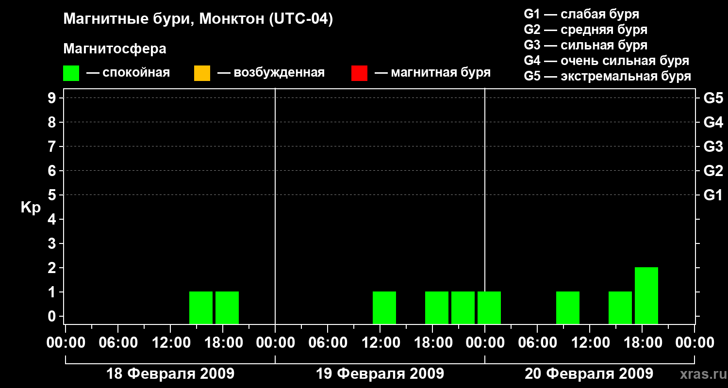 Магнитные бури в Монктоне — 20 февраля 2009 года