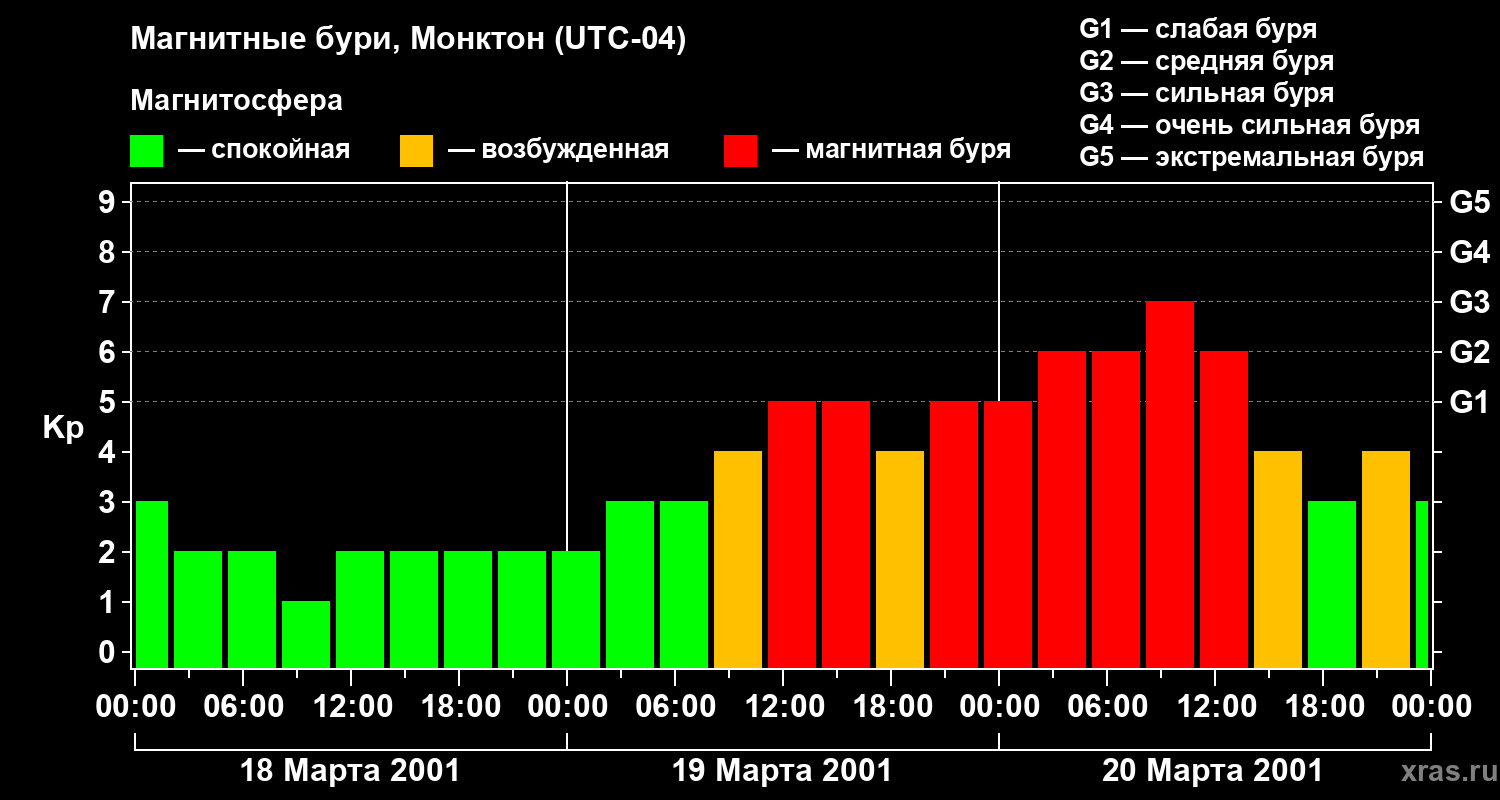 Магнитные бури в Монктоне — 20 марта 2001 года