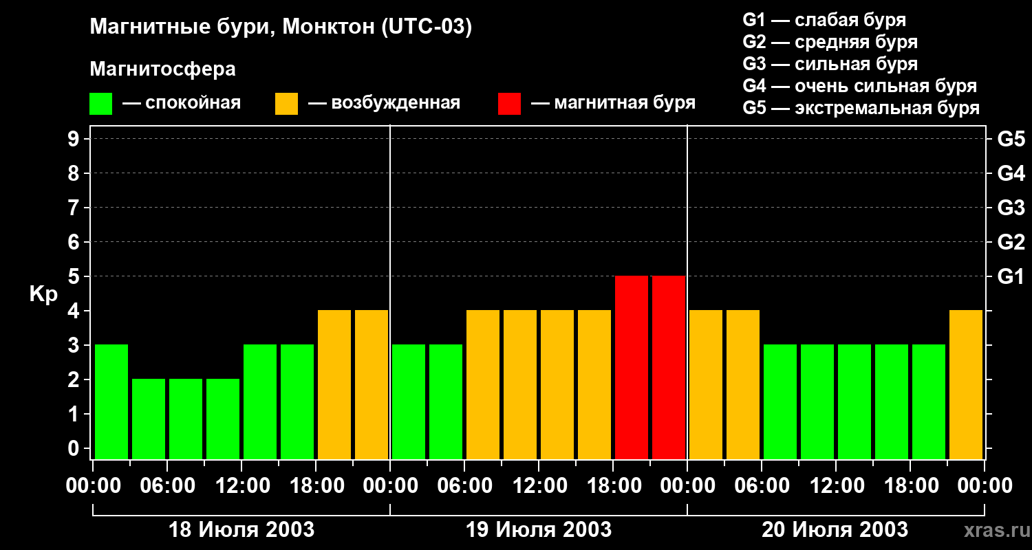 Магнитные бури в Монктоне — 20 июля 2003 года