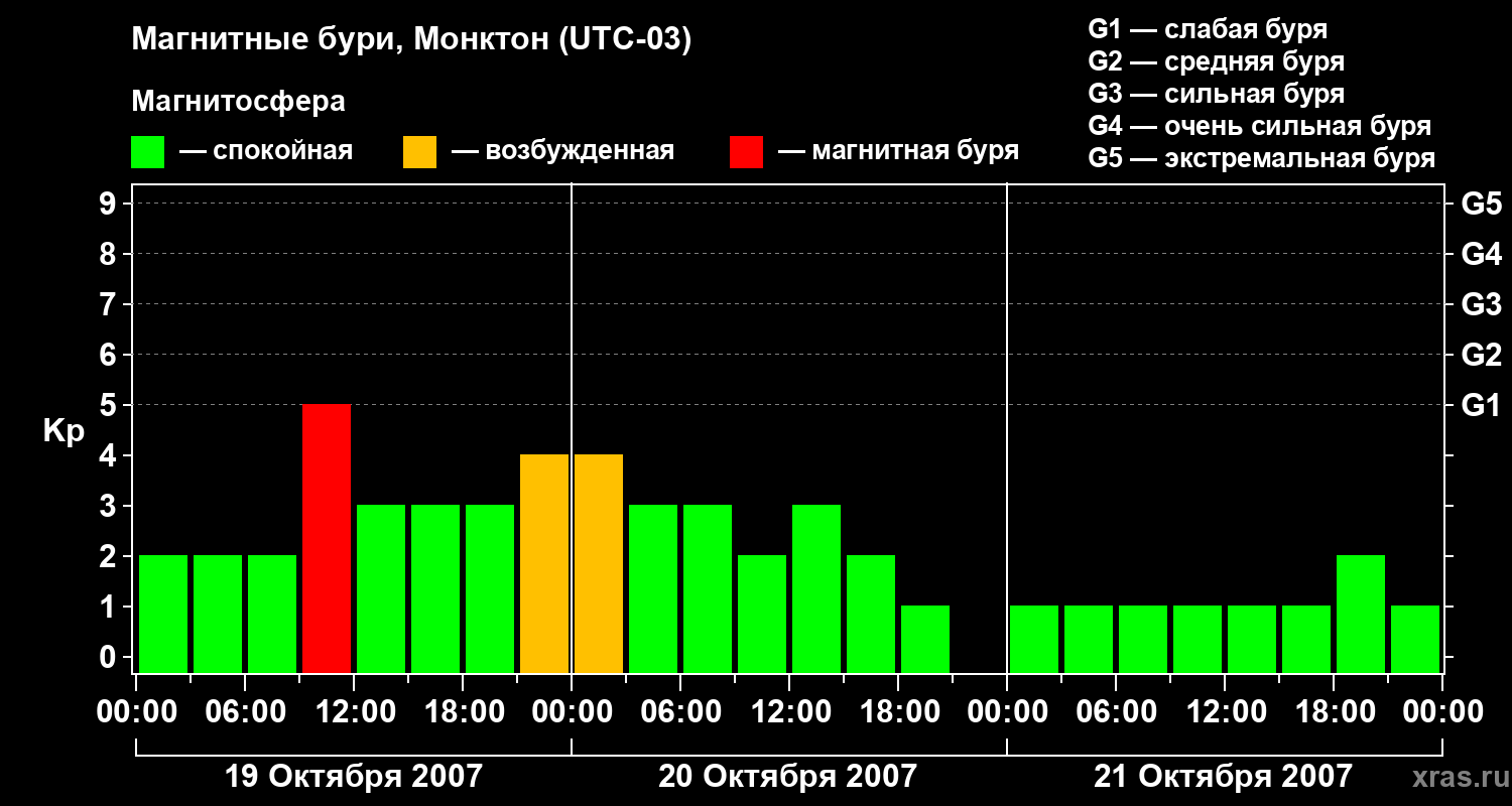 Магнитные бури в Монктоне — 21 октября 2007 года