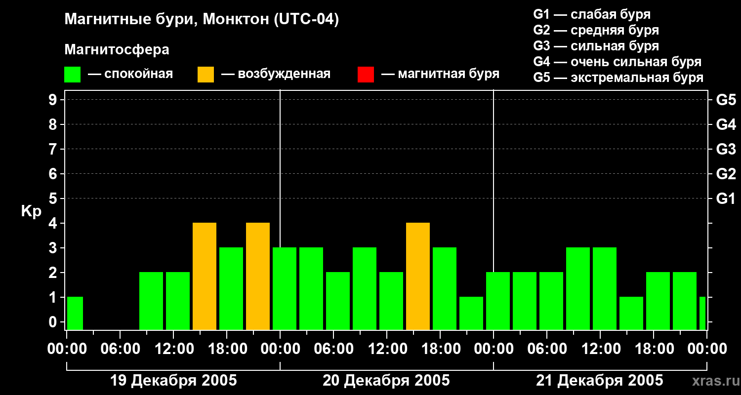 Магнитные бури в Монктоне — 21 декабря 2005 года