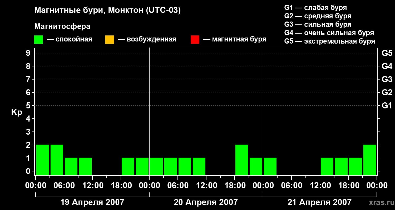 Магнитные бури в Монктоне — 21 апреля 2007 года