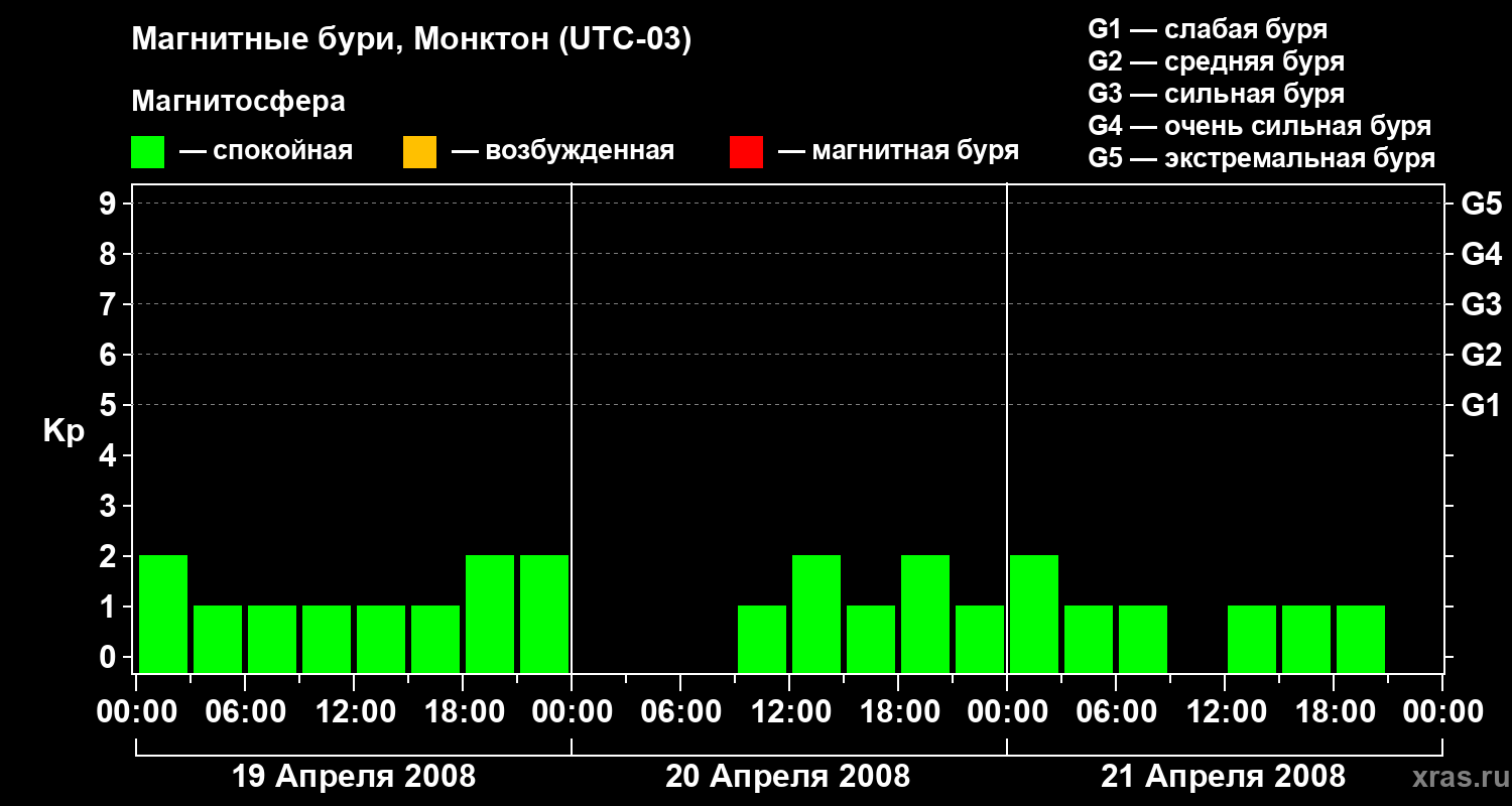 Магнитные бури в Монктоне — 21 апреля 2008 года