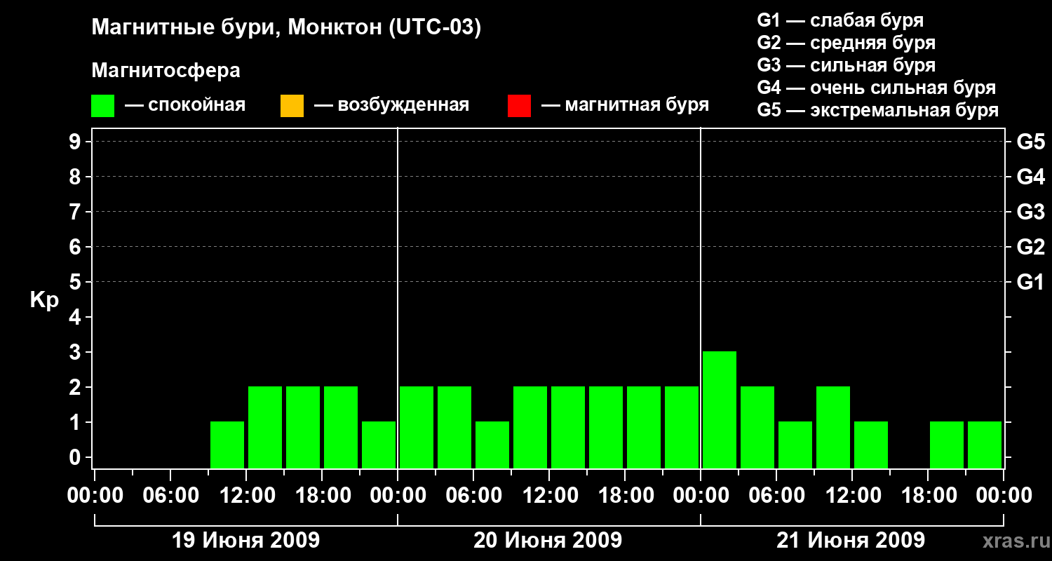 Магнитные бури в Монктоне — 21 июня 2009 года