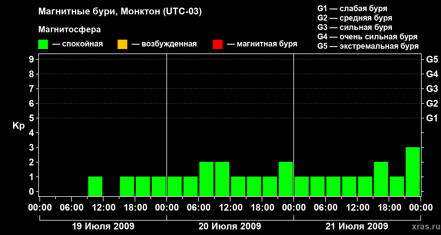Магнитные бури в Монктоне — 21 июля 2009 года