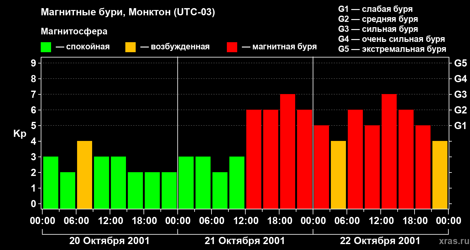 Магнитные бури в Монктоне — 22 октября 2001 года