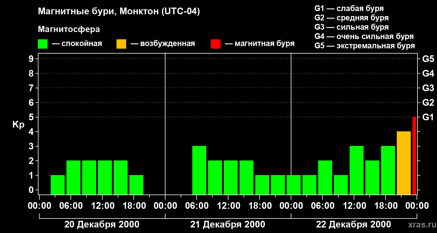 Магнитные бури в Монктоне — 22 декабря 2000 года