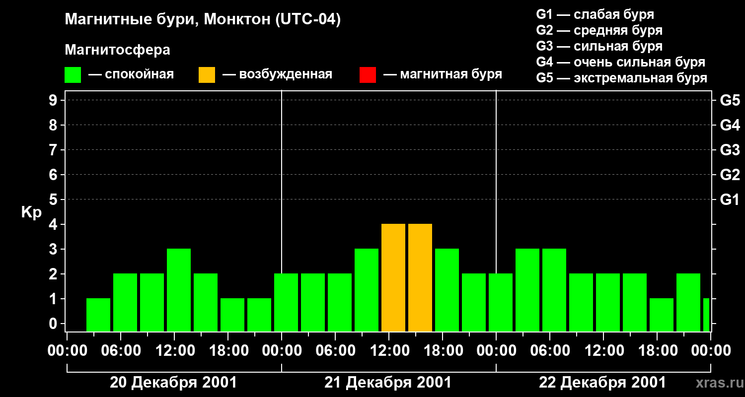 Магнитные бури в Монктоне — 22 декабря 2001 года
